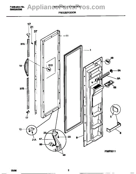The Door Shelf Support is an OEM part for Frigidaire refrigerators, designed to hold and support the shelves on the inside of the refrigerator door. This part ensures that door shelves are securely mounted, providing stable storage for bottles, condiments, and other items.