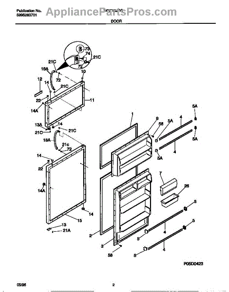 The Handle Mounting Block is an OEM part for Frigidaire refrigerators. This component anchors the refrigerator door handle assembly while also reinforcing the door structure. Causes of a bad mounting block can include cracks developing from repeated opening/closing stresses, broken fasteners loosening its installation, or residual damage during door replacement or repair attempts. Symptoms of a bad handle mounting block include:
