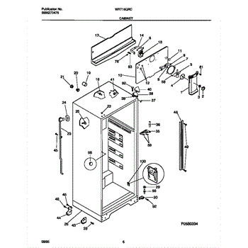 Rubber grommet cushions and seals freezer components, reducing vibration and preventing wear where wiring or rods pass through. Replace if cracked or worn.