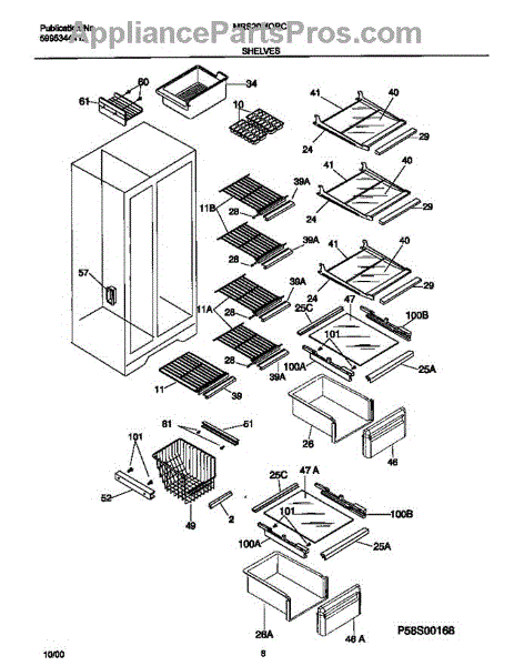 Plastic spacer that maintains proper distance between refrigerator shelves. Replace if cracked, broken, or missing to restore correct shelf positioning.