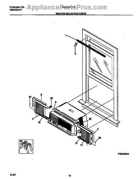 Window frame top seal for air conditioners. Replace when worn, cracked, or allowing air leaks to restore energy efficiency. Verify fit with your model.