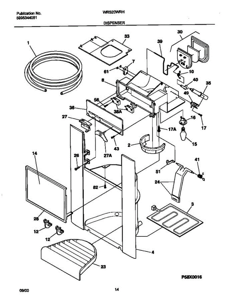Fixes ice buildup around water dispenser spout. This throat heater prevents freezing in the dispenser area. Moderate DIY repair, 30-45 minutes.