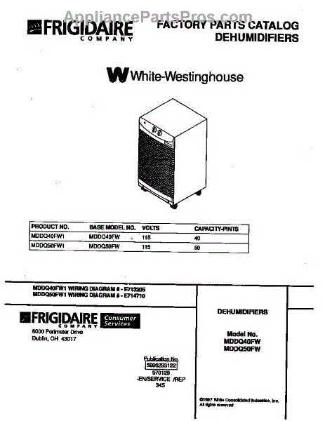 Frigidaire Dehumidifier Parts
