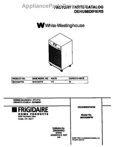 Frigidaire Dehumidifier Parts