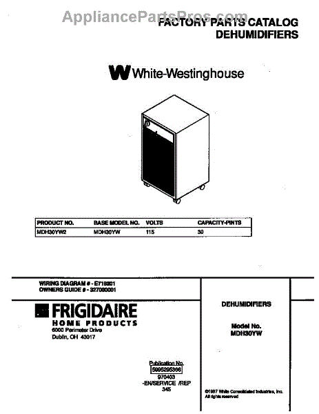 Parts for Frigidaire MDH30YW2: 01 - Cover Parts