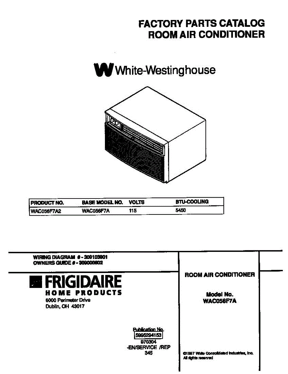 Parts for Frigidaire WAC056F7A2: 01 - Cover Parts