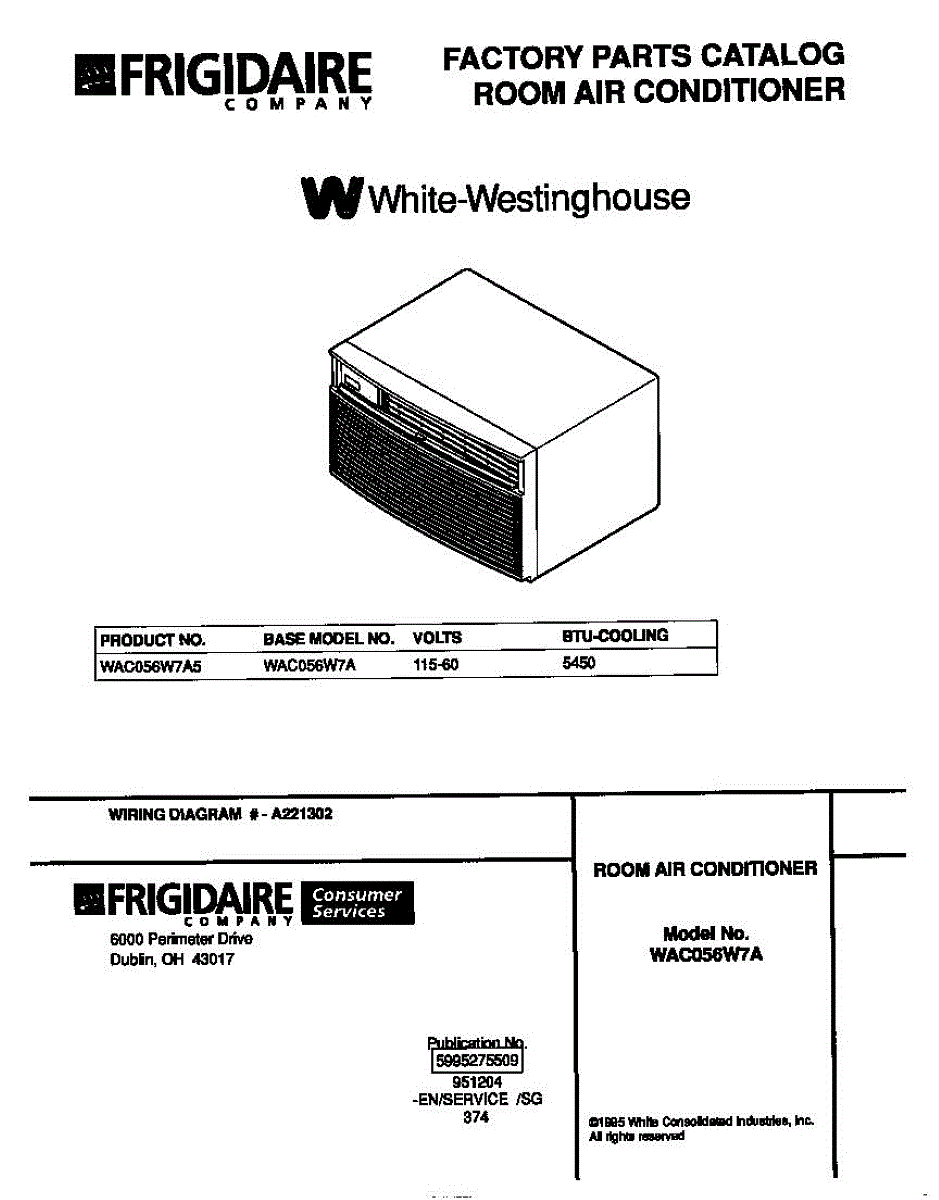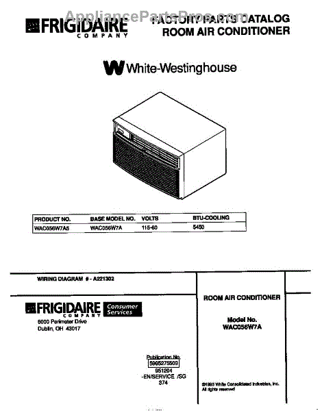 Parts for Frigidaire WAC056W7A5: 01 - Cover Parts