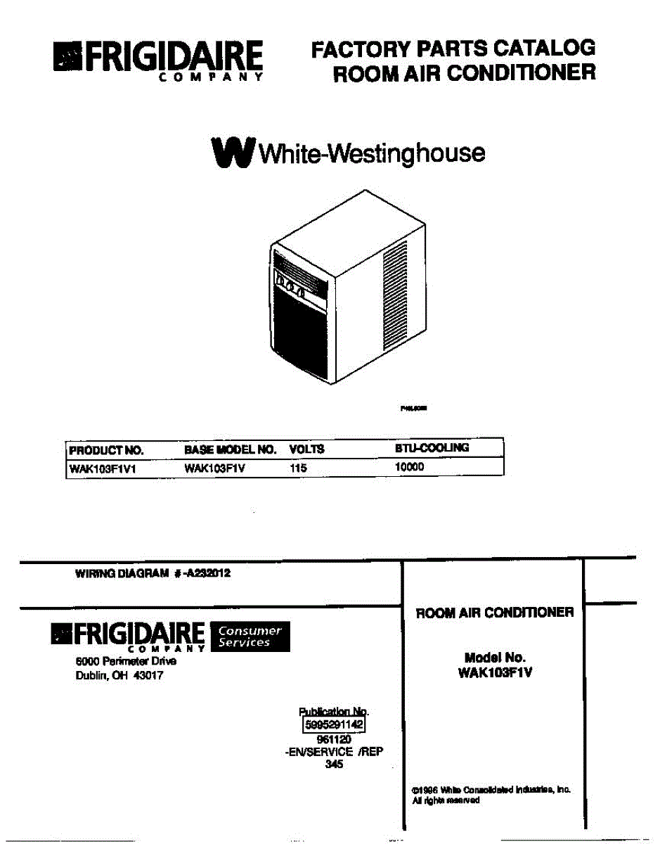 Parts for Frigidaire WAK103F1V1: 01 - Cover Parts