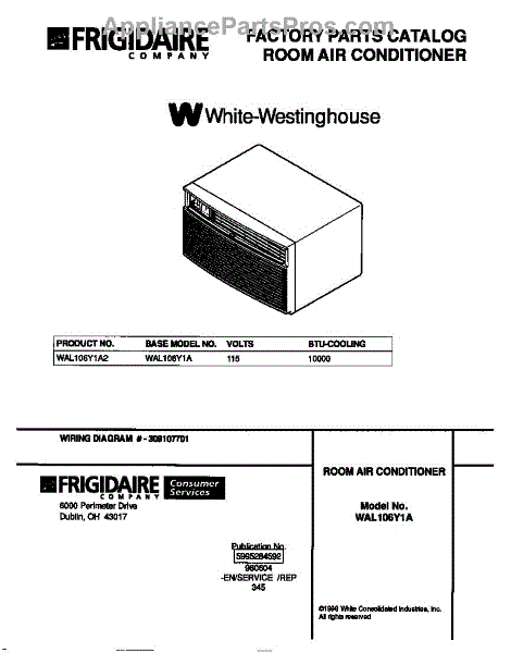 Parts for Frigidaire WAL106Y1A2: 01 - Cover Parts