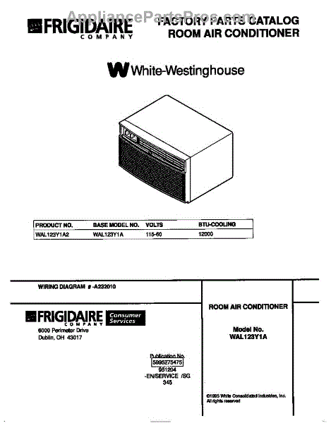 Parts for Frigidaire WAL123Y1A2: 01 - Cover Parts