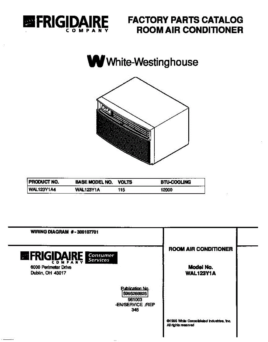 Parts for Frigidaire WAL123Y1A4: 01 - Cover Parts