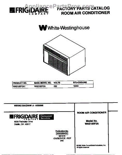 Parts for Frigidaire WAS185F2A1: 01 - Cover Parts