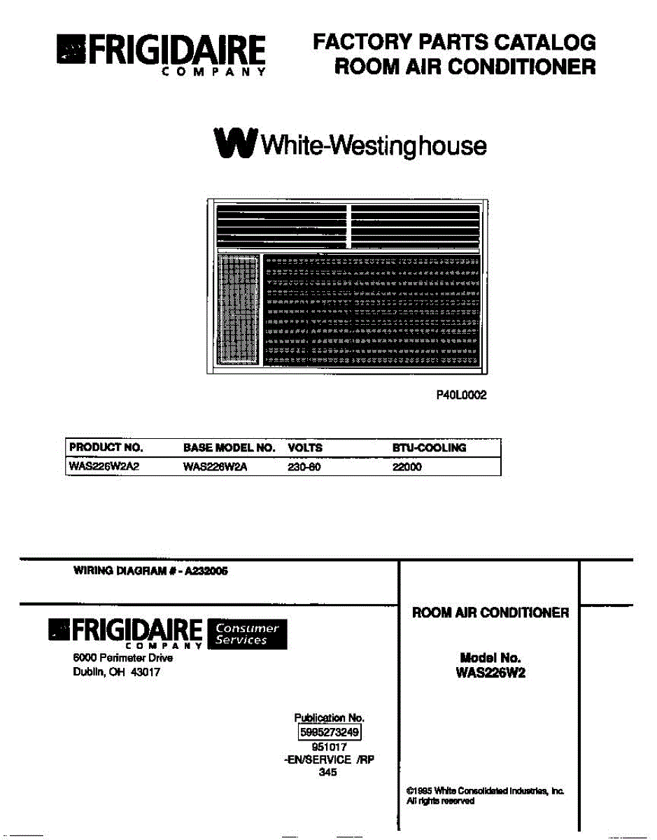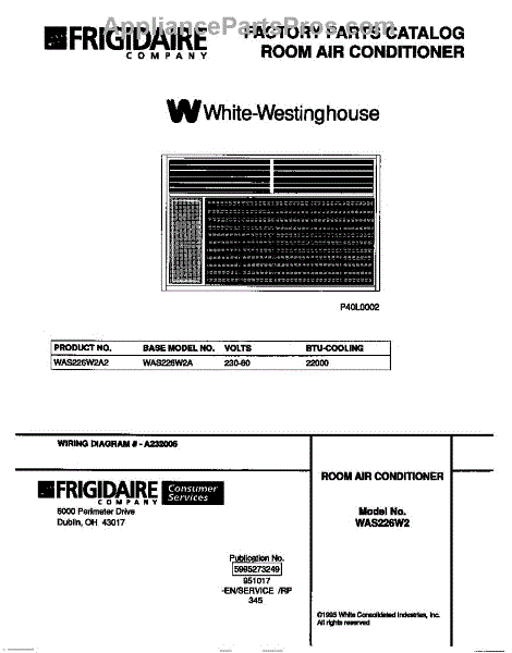 Parts for Frigidaire WAS226W2A2: 01 - Cover Parts