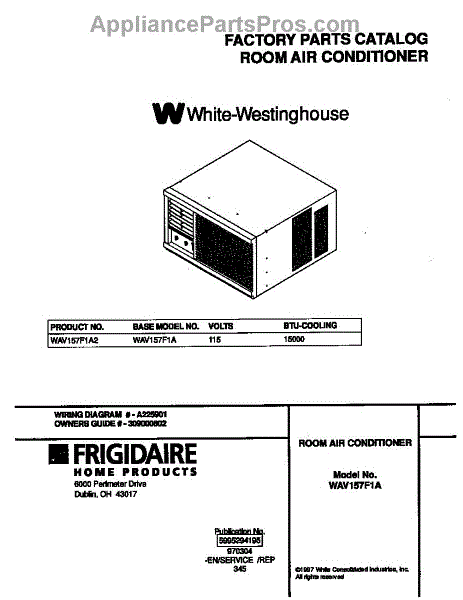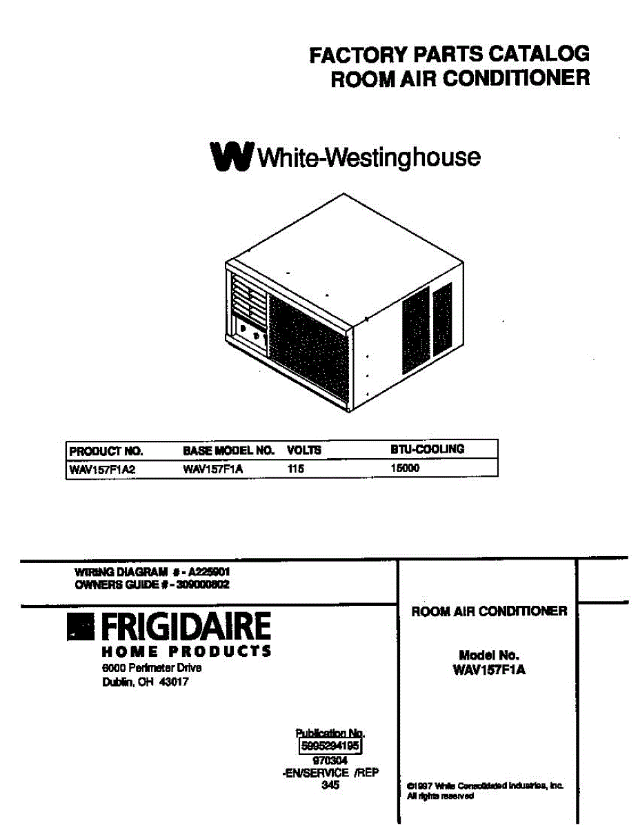 Parts for Frigidaire WAV157F1A2: 01 - Cover Parts
