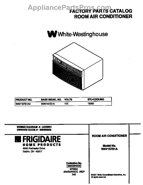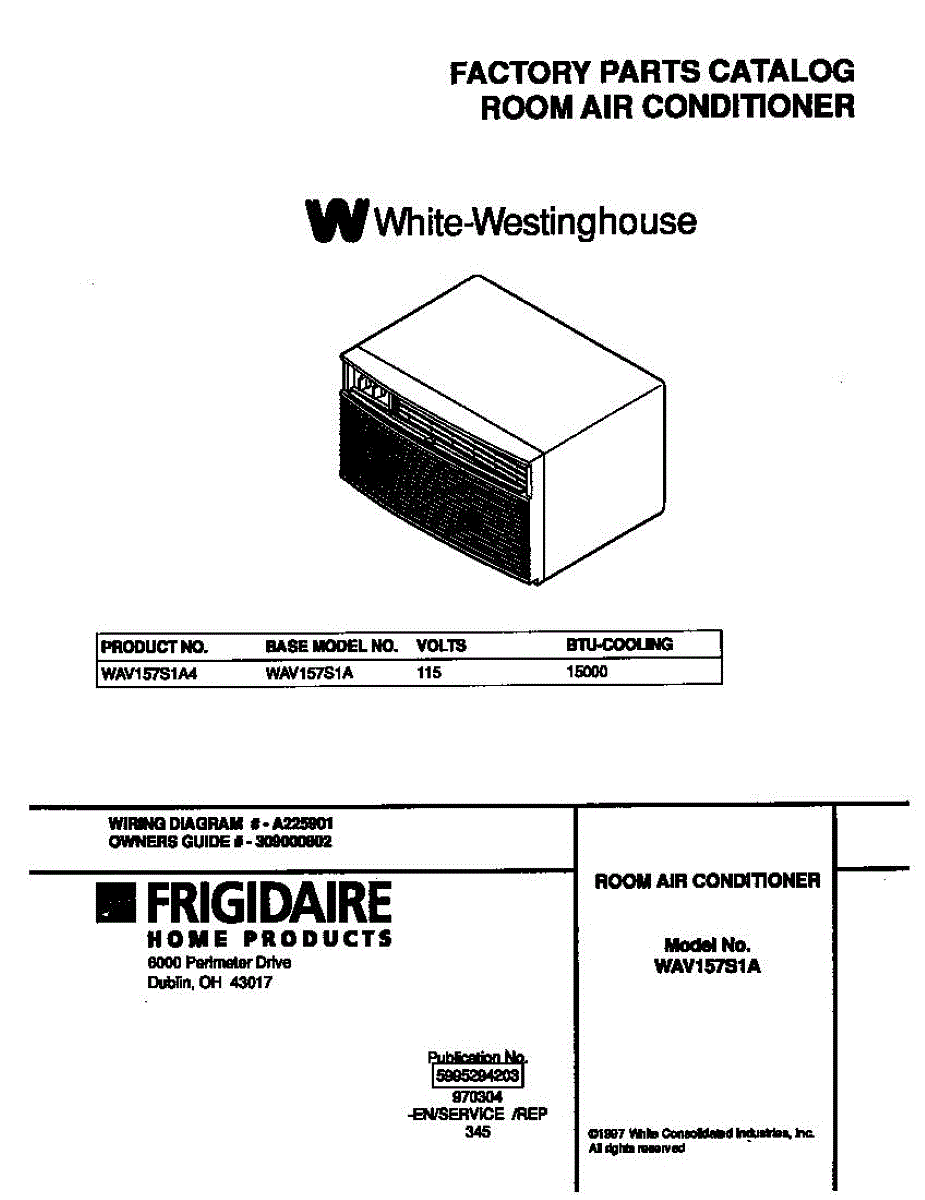 Parts for Frigidaire WAV157S1A4: 01 - Cover Parts
