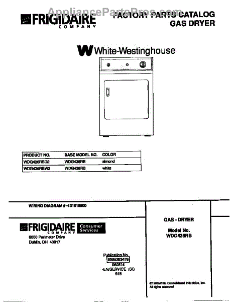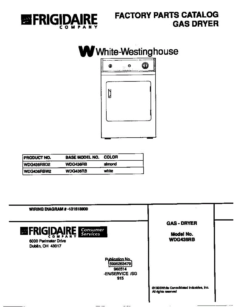 Parts for Frigidaire WDG436RBD2: 01 - Cover Parts