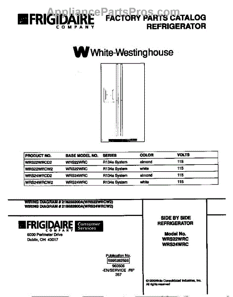 Parts for Frigidaire WRS24WRCD2: 01 - Cover Parts
