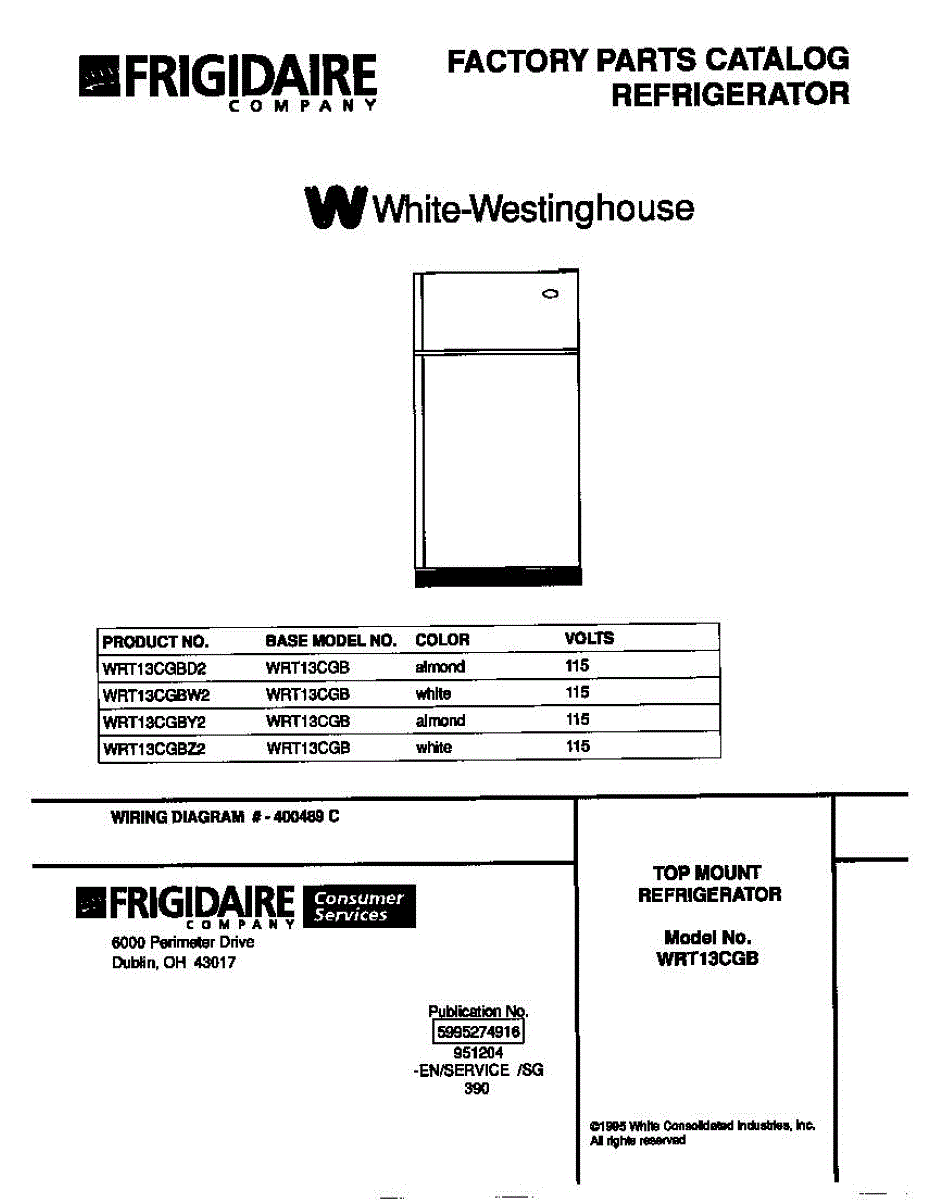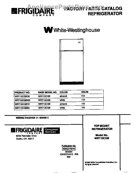 Parts for Frigidaire WRT13CGBZ2: 01 - Cover Parts
