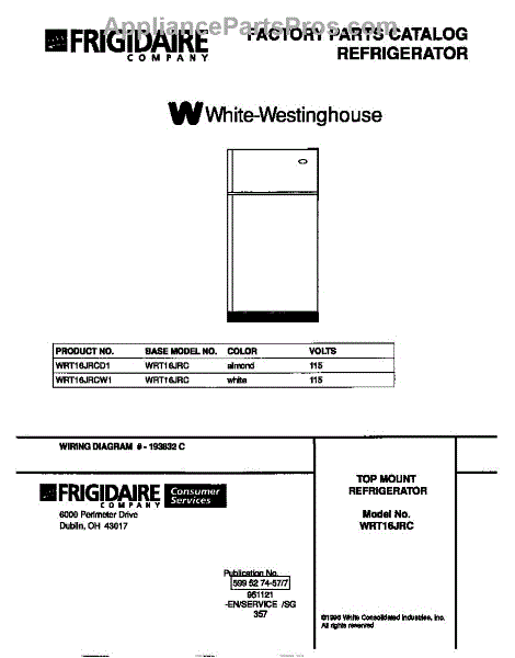 Parts for Frigidaire WRT16JRCW1: 01 - Cover Parts