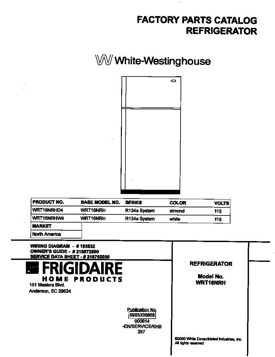 Parts for Frigidaire WRT16NRHD4: 01 - Cover Parts