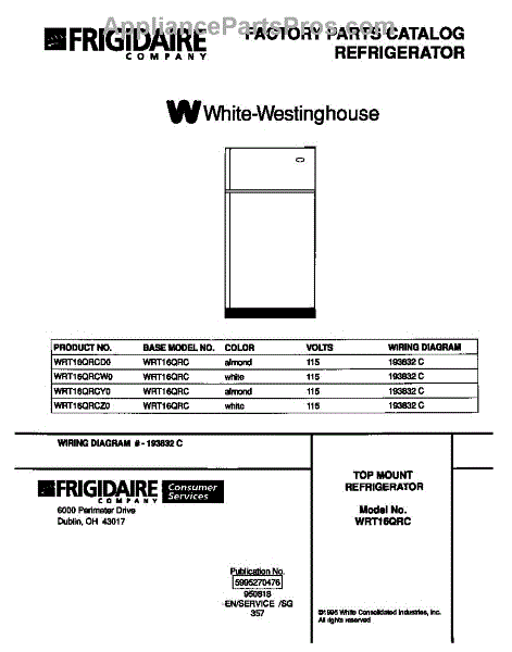 Parts for Frigidaire WRT16QRCD0: 01 - Cover Parts