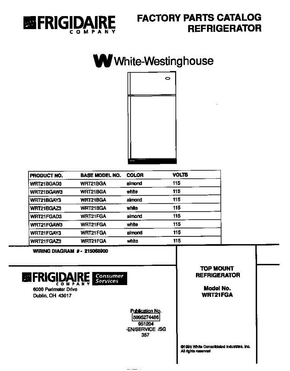 Parts for Frigidaire WRT21BGAW3: 01 - Cover Parts