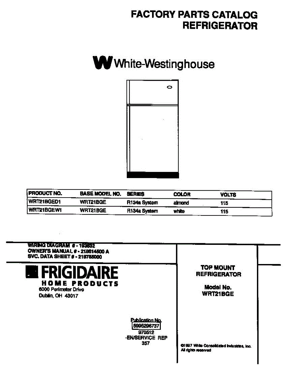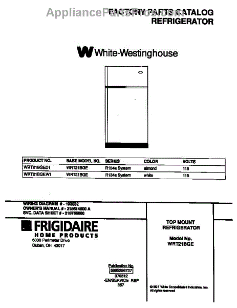 Parts for Frigidaire WRT21BGEW1: 01 - Cover Parts