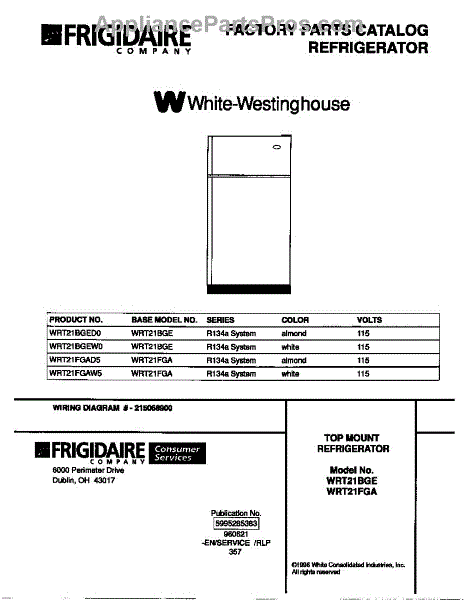 Parts for Frigidaire WRT21FGAD5: 01 - Cover Parts