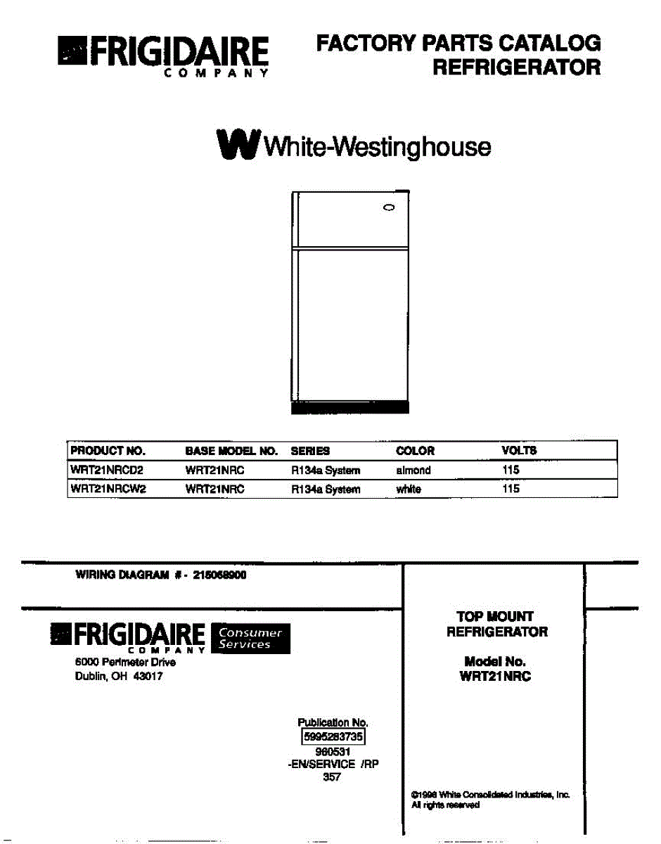 Parts for Frigidaire WRT21NRCD2: 01 - Cover Parts