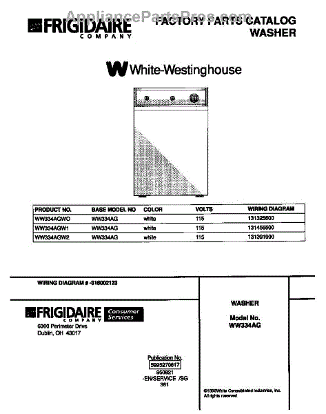 Parts for Frigidaire WW334AGW1: 01 - Cover Parts