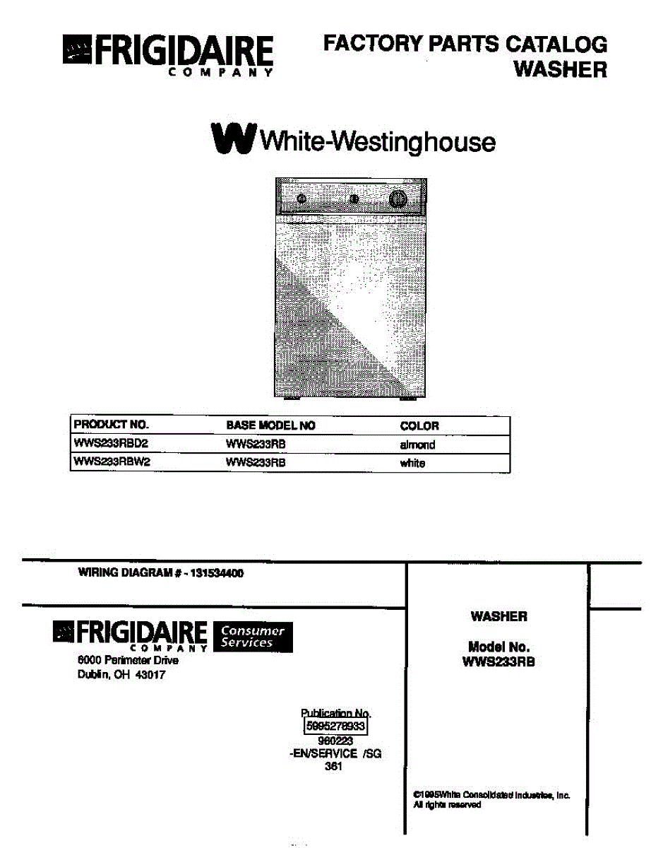 Parts for Frigidaire WWS233RBD2: 01 - Cover Parts