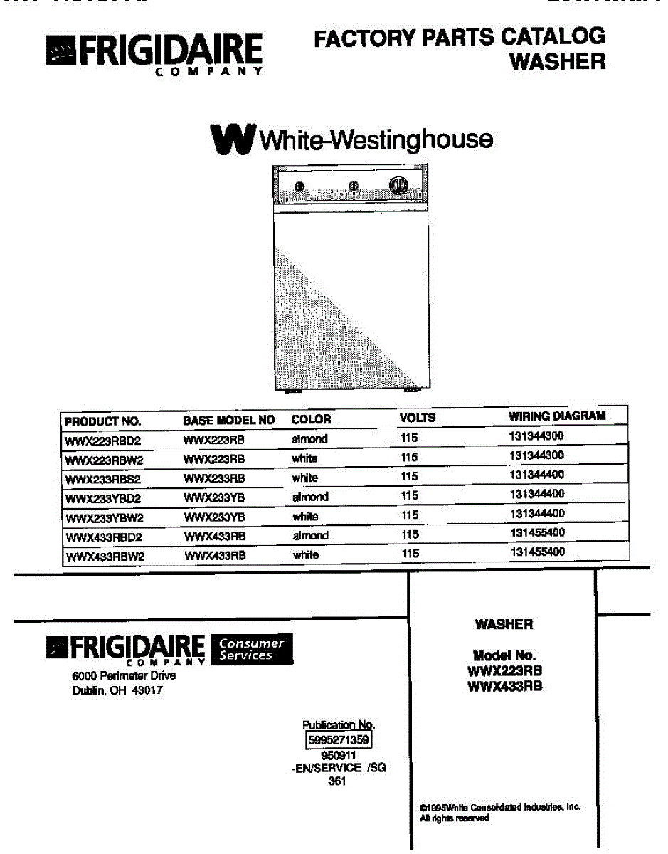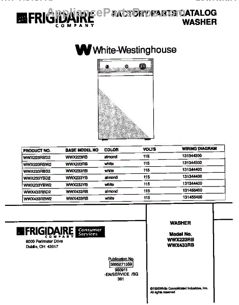 Parts for Frigidaire WWX233RBS2: 01 - Cover Parts