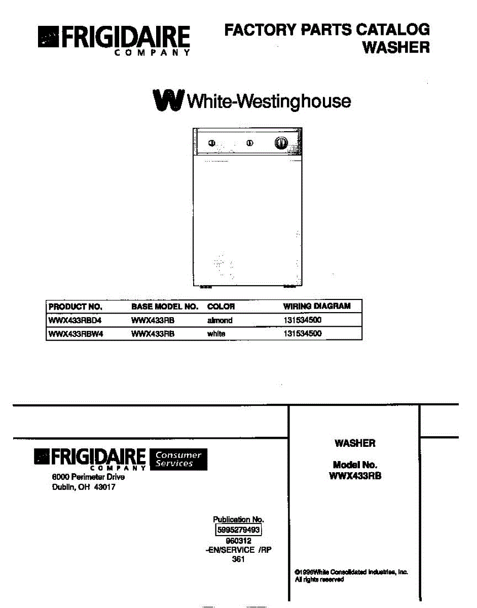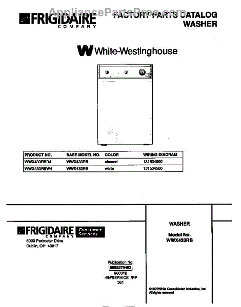 Parts for Frigidaire WWX433RBW4: 01 - Cover Parts