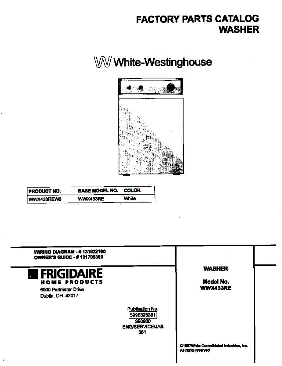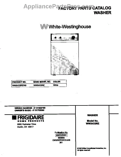 Parts for Frigidaire WWX433REW0: 01 - Cover Parts
