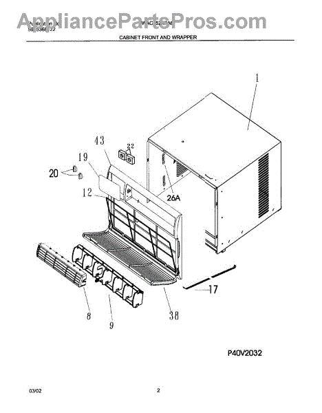 Parts for White Westinghouse WAC052K7A6: 03 - Cabinet Front And Wrapper Parts