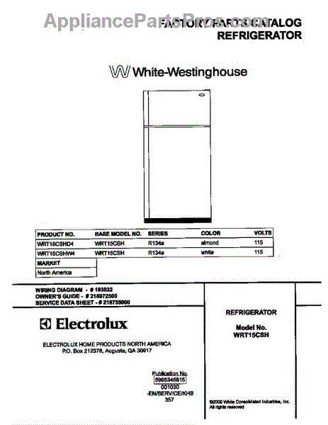 Parts for White Westinghouse WRT15CSHW4: White-Westinghouse White-Westinghouse / Refrigerator - P5995345815 Cover Parts