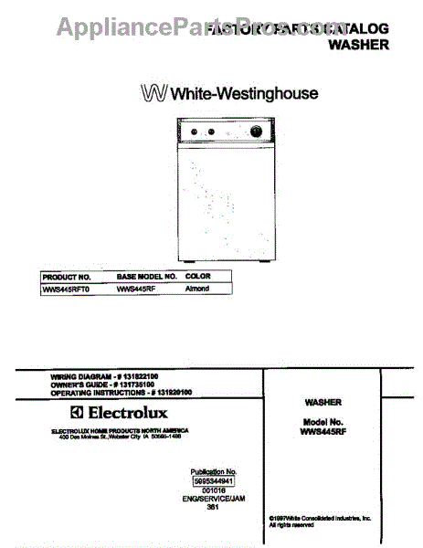 Parts for White Westinghouse WWS445RFT0: White-Westinghouse White-Westinghouse / Washer - P5995344941 Cover Parts