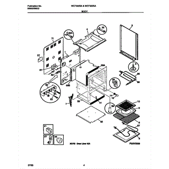 Insulation blanket surrounds the oven cavity to retain heat. Replace if burnt, deteriorated, or damaged by pests to restore proper heat retention.