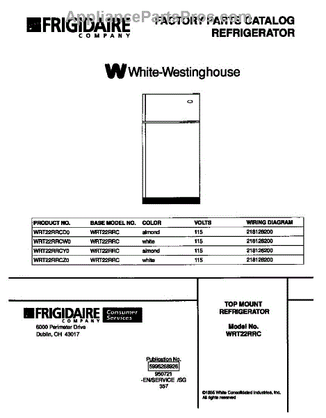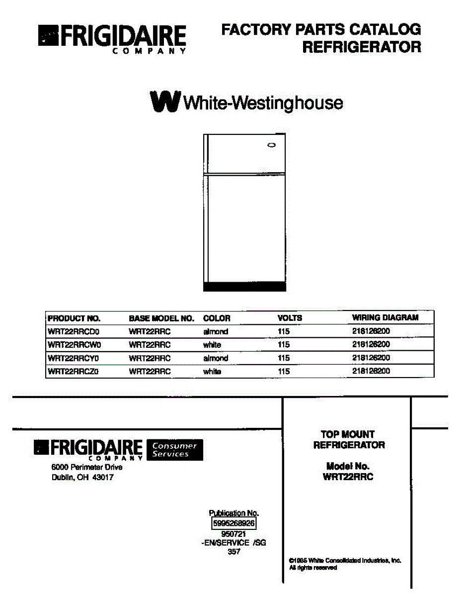 Parts for Frigidaire WRT22RRCD0: 01 - Cover Parts