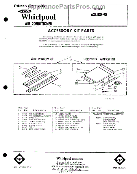 Parts for Whirlpool AXL18040: 01 - Window Accessory Kit Parts