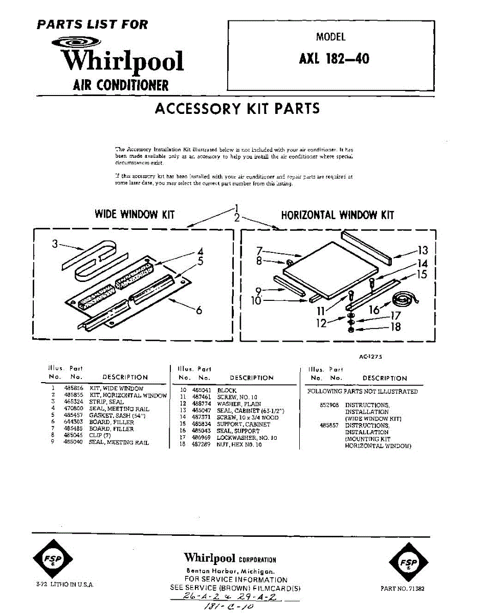 Parts for Whirlpool AXL18240: 01 - Window Accessory Kit Parts