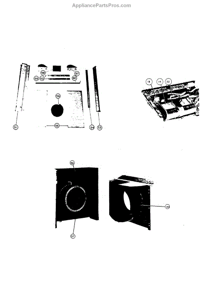 Parts for Carrier 51HKC227320: Window Mount, Thermostat, & Blower Wheel Parts