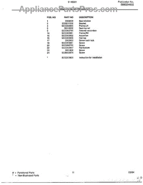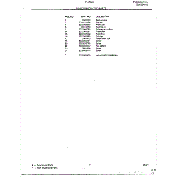 Parts for Frigidaire 5145001B: Window Mounting Parts