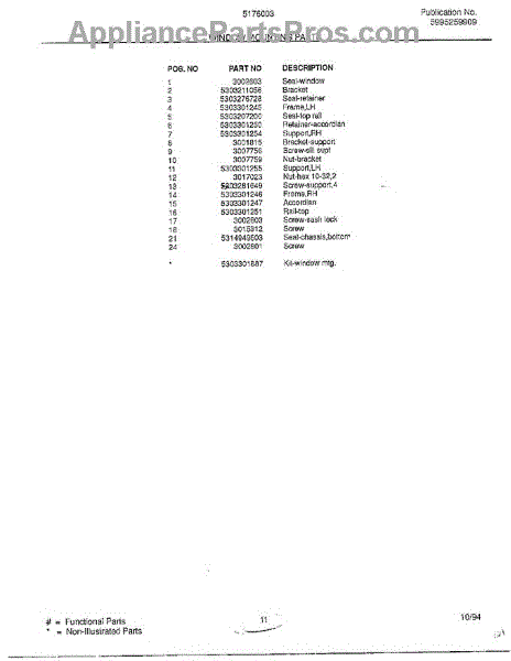 Parts for Frigidaire 5176003A: Window Mounting Parts