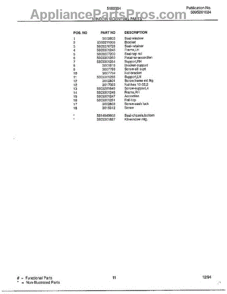 Parts for Frigidaire 5180004A: Window Mounting Parts
