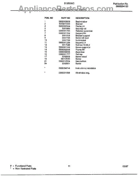 Parts for Frigidaire 5195006: Window Mounting Parts