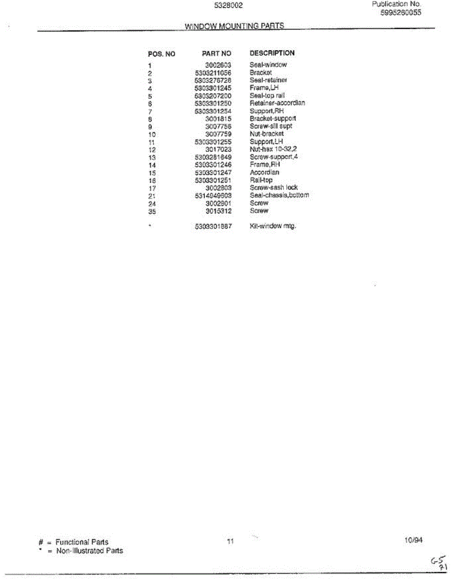 Parts for Frigidaire 5328002B: Window Mounting Parts