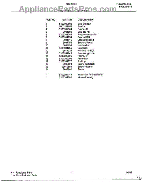 Parts for Frigidaire 5368000B: Window Mounting Parts