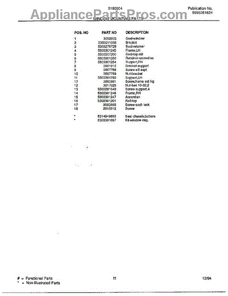 Parts for Frigidaire VWE5180A: Window Mounting Parts