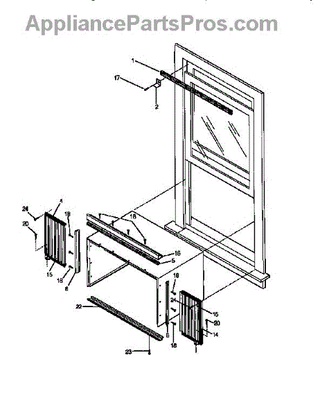 Window frame top seal for air conditioners. Replace when worn, cracked, or allowing air leaks to restore energy efficiency. Verify fit with your model.